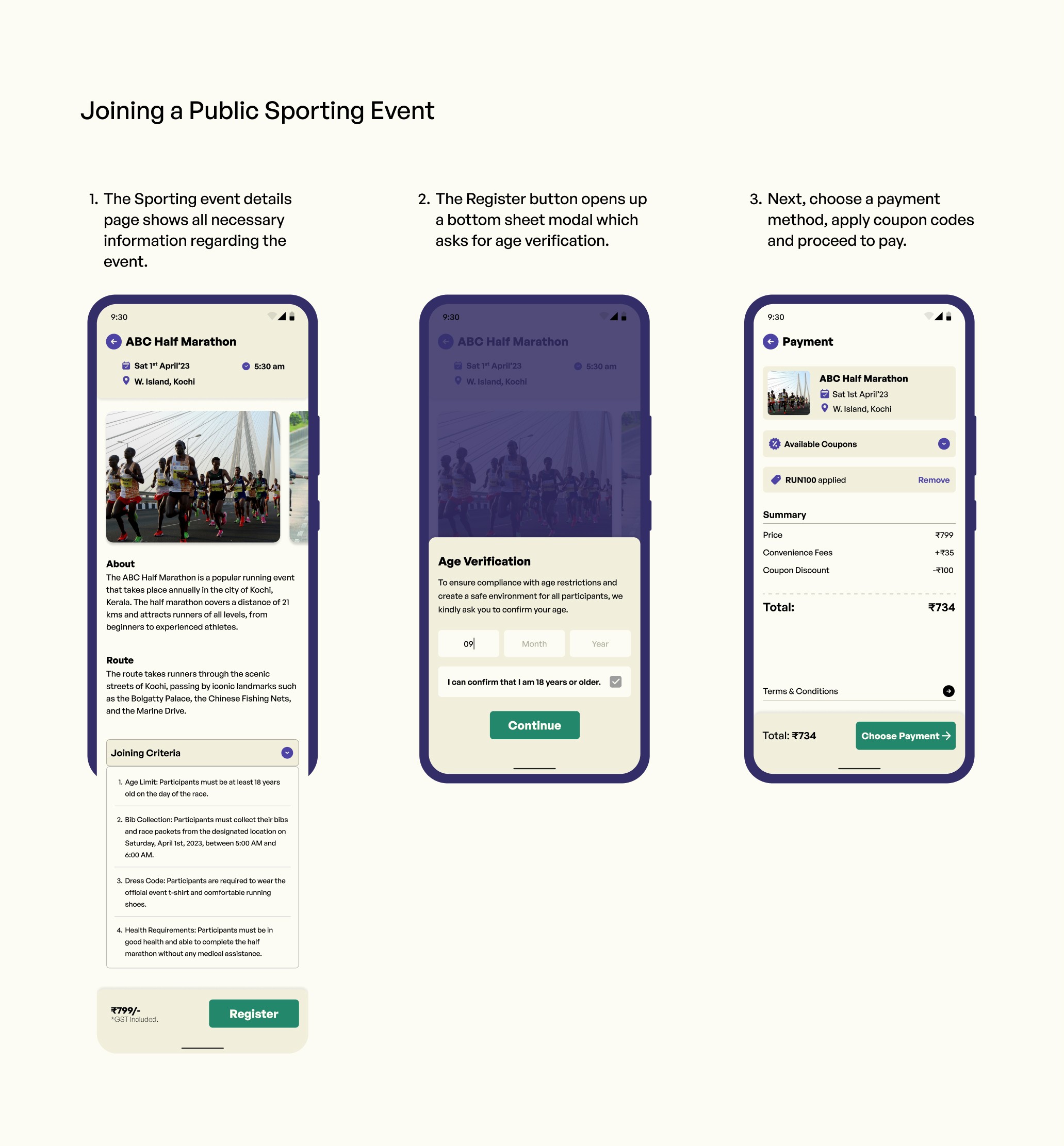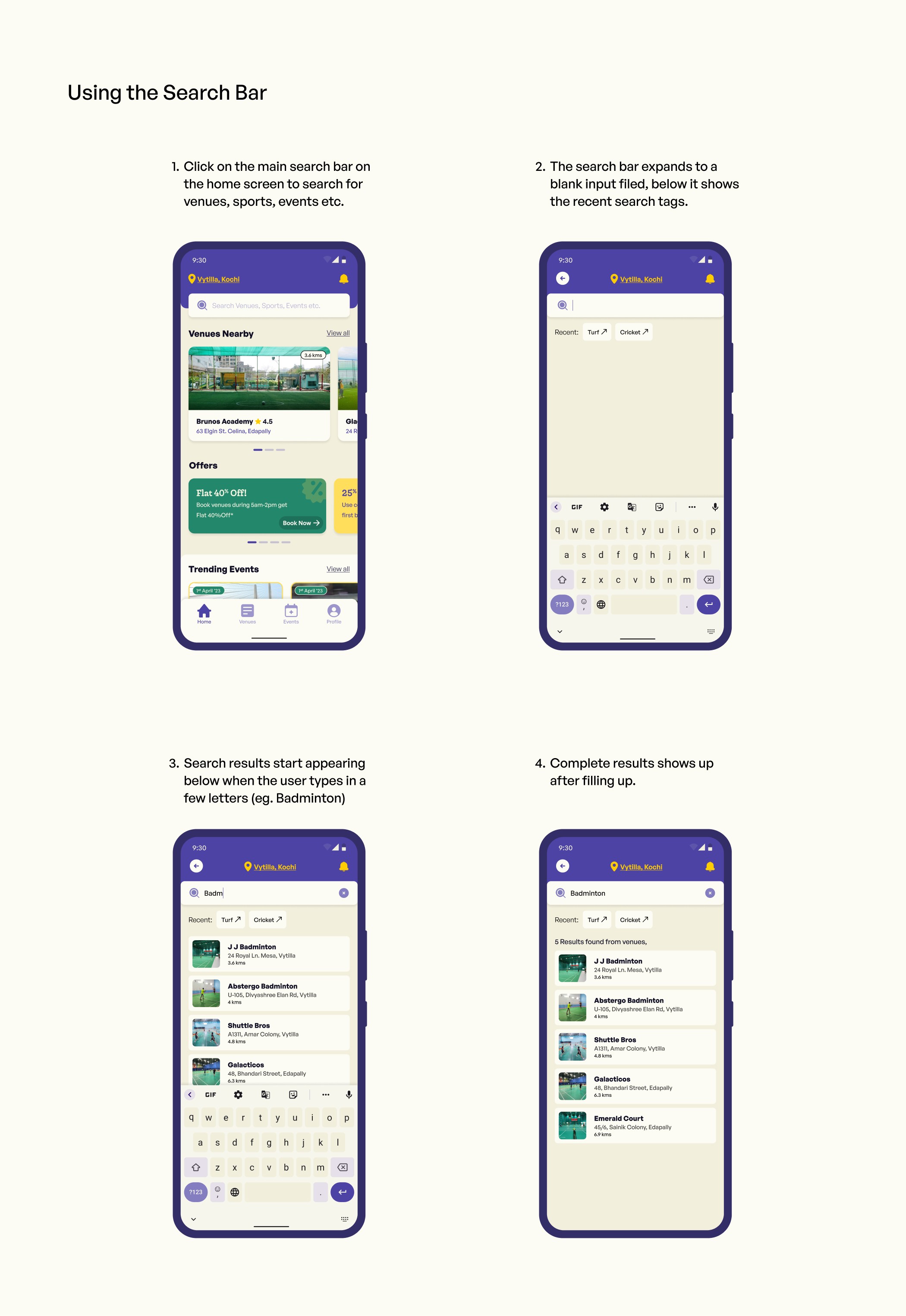 Despite the growing interest in fitness and group sports, there is a gap for a centralized platform to facilitate it. Currently, users are forced to navigate through confusion when booking a sports venue, search for players to fill in their teams, and go through social media deep-dives to discover local sports events.